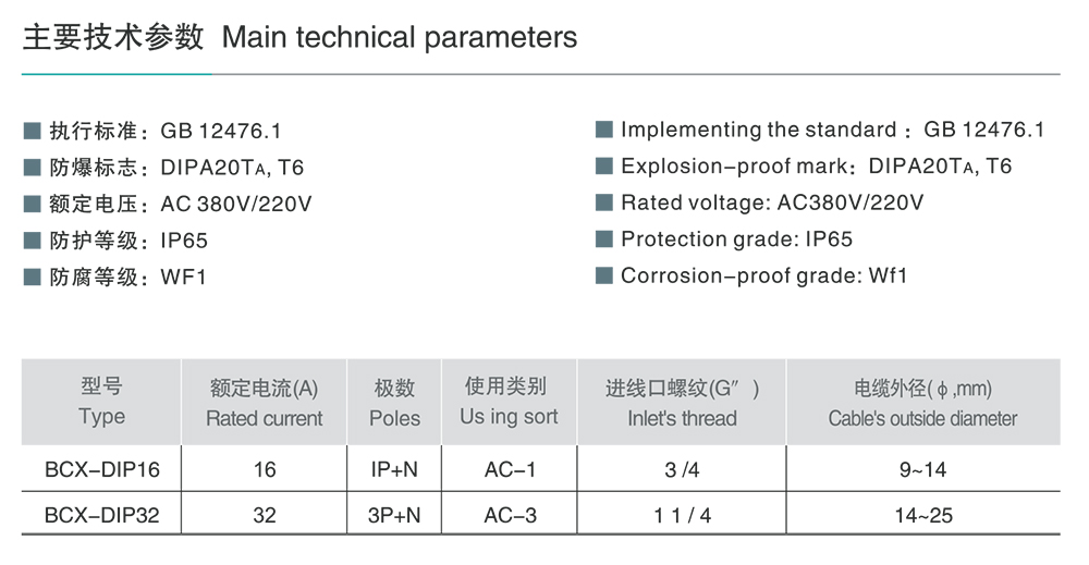 > BCX-DIP系列粉尘防爆插销(DIPA20)
