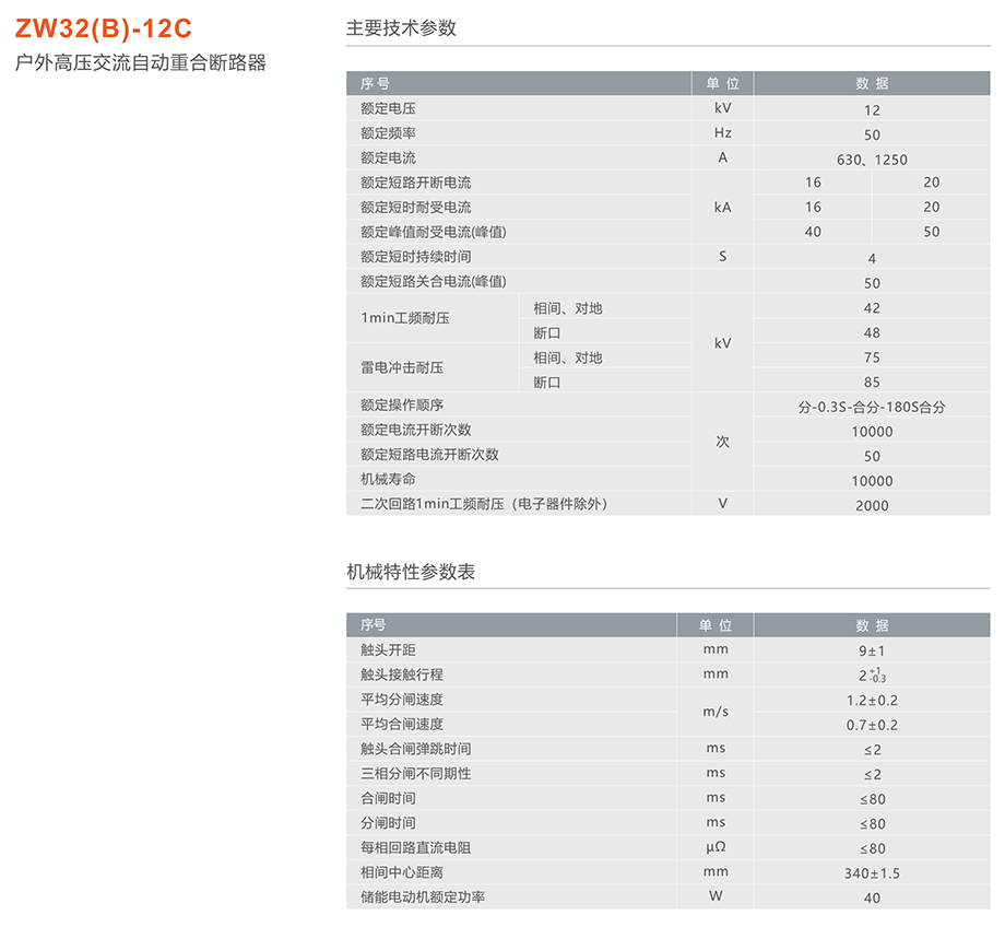 > ZW32(B)-12C户外高压交流自动重合断路器